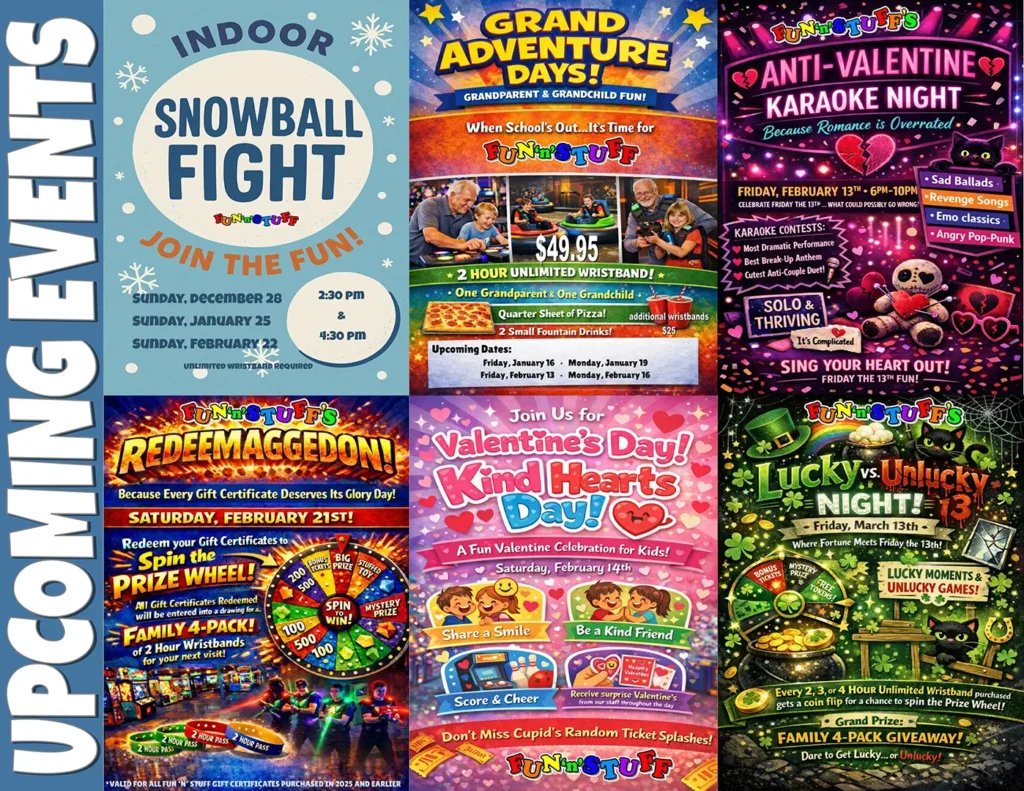 We extend our exceptional entertainment experiences beyond family outings and birthday parties to accommodate corporate and charity events. We provide an enjoyable atmosphere for corporate outings that help employees bond, celebrate successes, and spend time together outside of the office. We also partner with organizations for FUNdraising opportunities that help you generate financial support for your cause. Whether it’s strengthening your team or supporting your community, Fun’n’Stuff ensures a productive and enjoyable event.